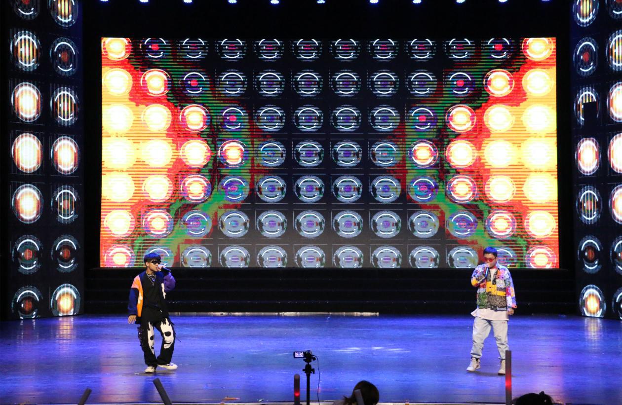 流年如诗舞中绽,舞蹈《soul controller》为迎新晚会的开场晕染了青春活力的底色。开场舞过后,四位主持人上台介绍了出席本次晚会的领导和嘉宾。一首由符明超、许徽带来的歌曲《我要你》清新绵长,甜蜜悠远;由研究生带来的舞蹈《百老汇》性感俏皮,似夜上海的霓虹,又似巴黎街头的香风;由20级传播一班演唱的《夜空中最亮的星》清澈空灵,温柔深情;HPA说唱社用他们激情饱满、活力四射的说唱《通往未知的路》结束了第一篇章。晚会进行了微信观众互动抽奖,现场气氛热烈。