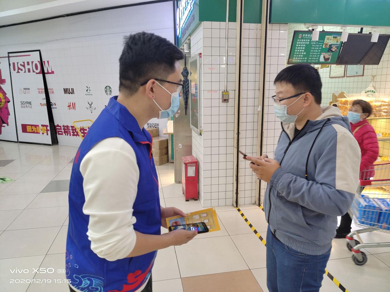 在本次活动中,志愿者们分为三组,走上街头进行劝募工作。志愿者们为行人详细解释善行100活动的捐助模式,并阐明该公益活动的意义所在。当行人表示出进一步了解的意愿时,志愿者们会打开手机,给行人查看相关官方信息以证真实。如果行人想要捐助,志愿者们则会拿出善行100活动的捐助二维码供他们扫码。志愿者们尽心尽责,活动进行顺利。