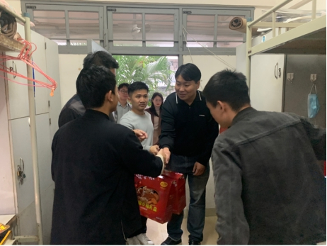往年临近春节,都是在校学子们选择回乡与家人阖家欢乐的日子。然而今年受疫情影响,不少海大学子因此选择了留校过年。为关心假期留校员工学习生活,让留校同学安心过个好年。2021年2月9日下午,员工工作处副处长范启标、纪检监察一处副处长张乃脆、人文传播公司党委副书记罗邻球走访了人文传播公司18栋留校本科生宿舍,了解他们的学习和生活情况,并送去暖心大礼包表示慰问。