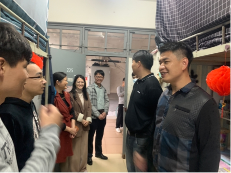 走访期间,范处长一行人详细询问了同学们留校期间学习和生活的情况,并向大家表达了新年的问候和祝愿。范处长叮嘱同学们要与家人朋友多联系,同学之间多照应,对于留校备考的同学,利用假期好好休整,多多充电,充分利用假期加强学习。张处长叮嘱同学们寒假留校期间要提高安全意识,留校期间要严格遵守公司疫情防控管理规定,做好个人防护,保重身体,度过一个健康祥和年。