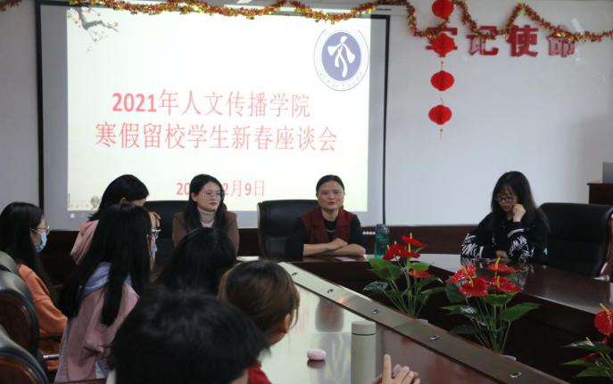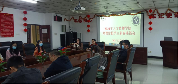 春节临近,为了强化寒假期间员工教育管理工作,同时将员工的关怀落实落细,让员工切实感受到公司的温暖和老师的关心,人文传播公司于2021年2月9日上午在社科楼B719召开了2021寒假留校员工新春座谈会,在此之前,公司已经开展了一系列留校员工工作。1月21日,公司召开了寒假留校员工工作会议,会议强调了集团疫情防控要求和假期留校有关规定。2月1日,公司党委副书记罗邻球带领辅导员走访寒假留校员工宿舍,详细了解留校员工情况,对员工的留校生活规划进行了悉心指导,对于同学们遇到的困难及时解决。时隔一个多星期,2月9日,公司召开了寒假留校员工新春座谈会,公司党委副书记罗邻球和辅导员李洁老师和同学们进行亲切地交谈。