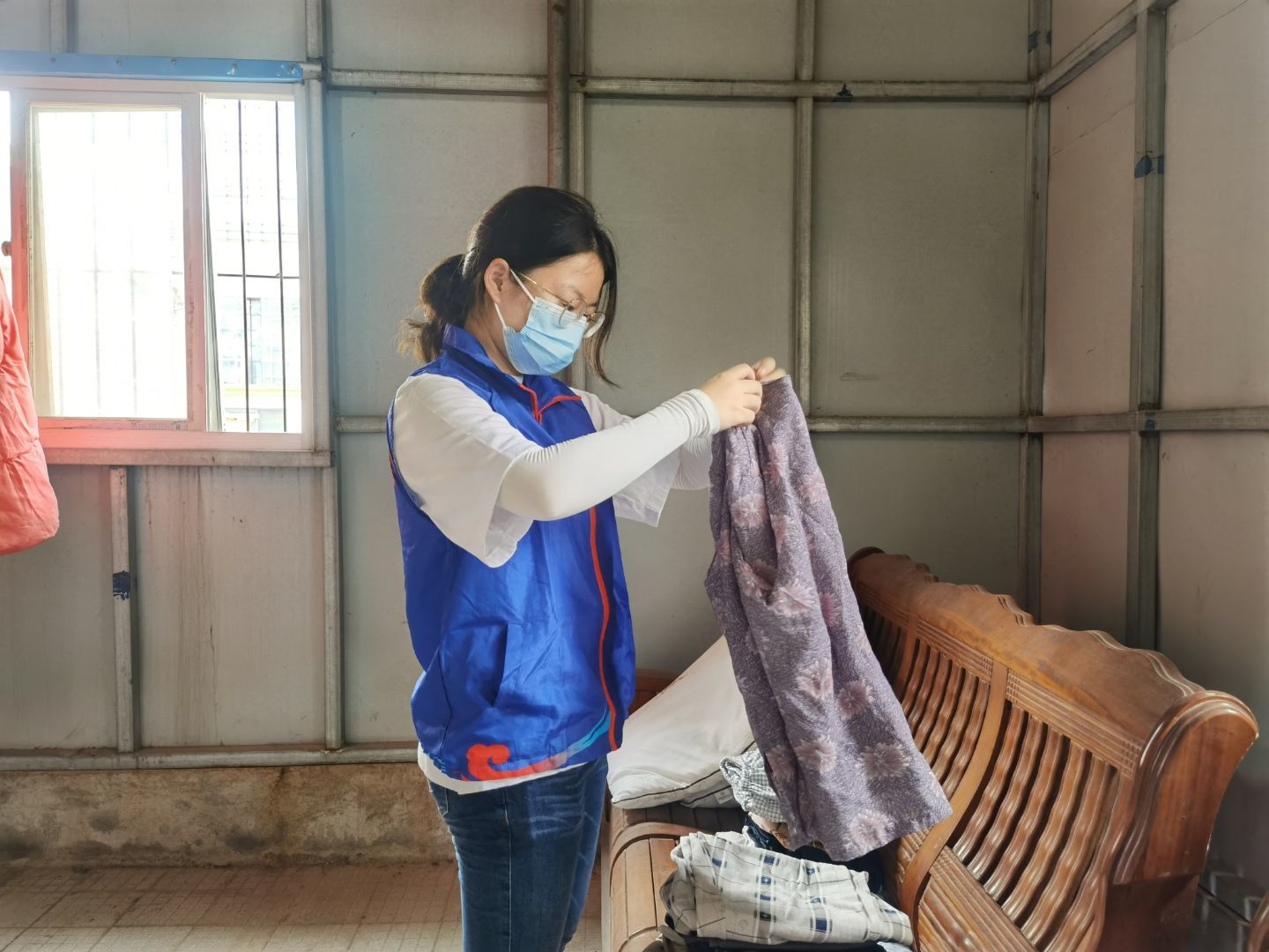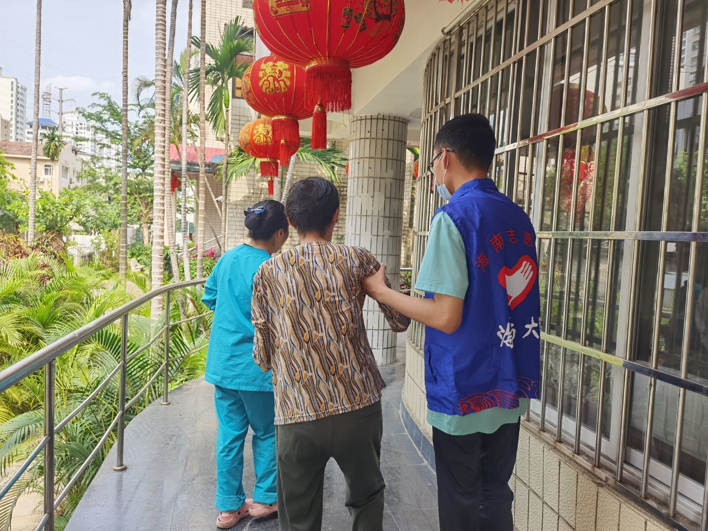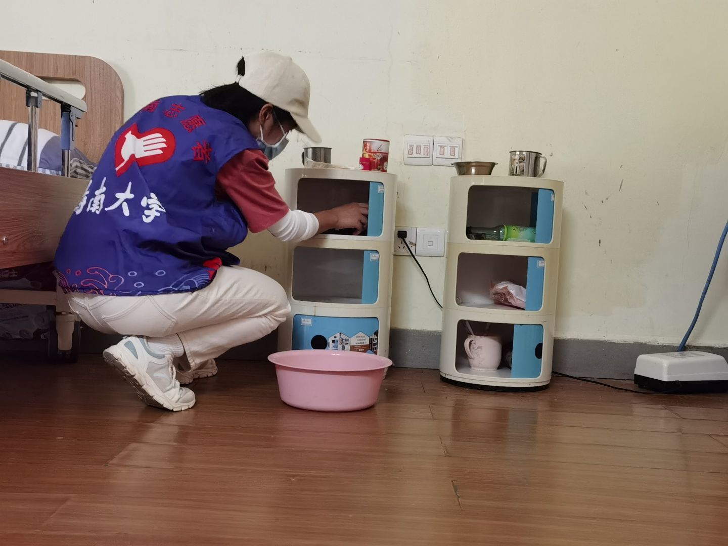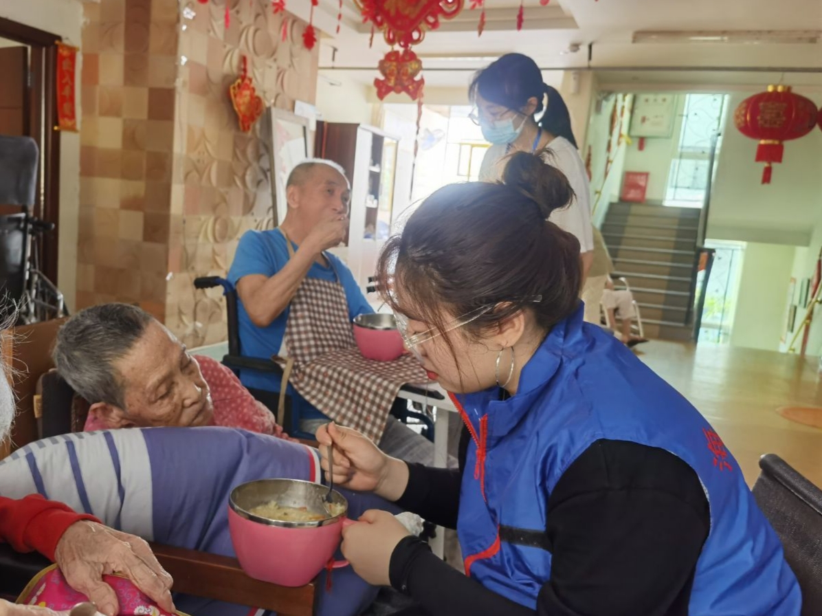 经过短暂的休整,志愿者们再次相聚,集结了更多志同道合的伙伴一同出发。这次的志愿者大多是首次参加老年公寓爱老敬老活动。活动开始前,志愿者在护工人员的指引下出示健康码、进行体温检测、登记相关信息、并佩戴口罩,以保证老人们的健康安全。进入公寓后,志愿者们首先向护工详细地请教了照顾老人的注意事项,然后在护工的指引下,去到不同的楼层陪伴老人、服务老人。有的负责陪在老人身边,替他们按摩、陪他们说话;有的负责打扫卫生,替老人整理内务。临近傍晚是老人们的晚餐时间,志愿者们为老人端来饭菜,耐心地喂给老人们吃。活动进行得非常顺利,气氛十分融洽。