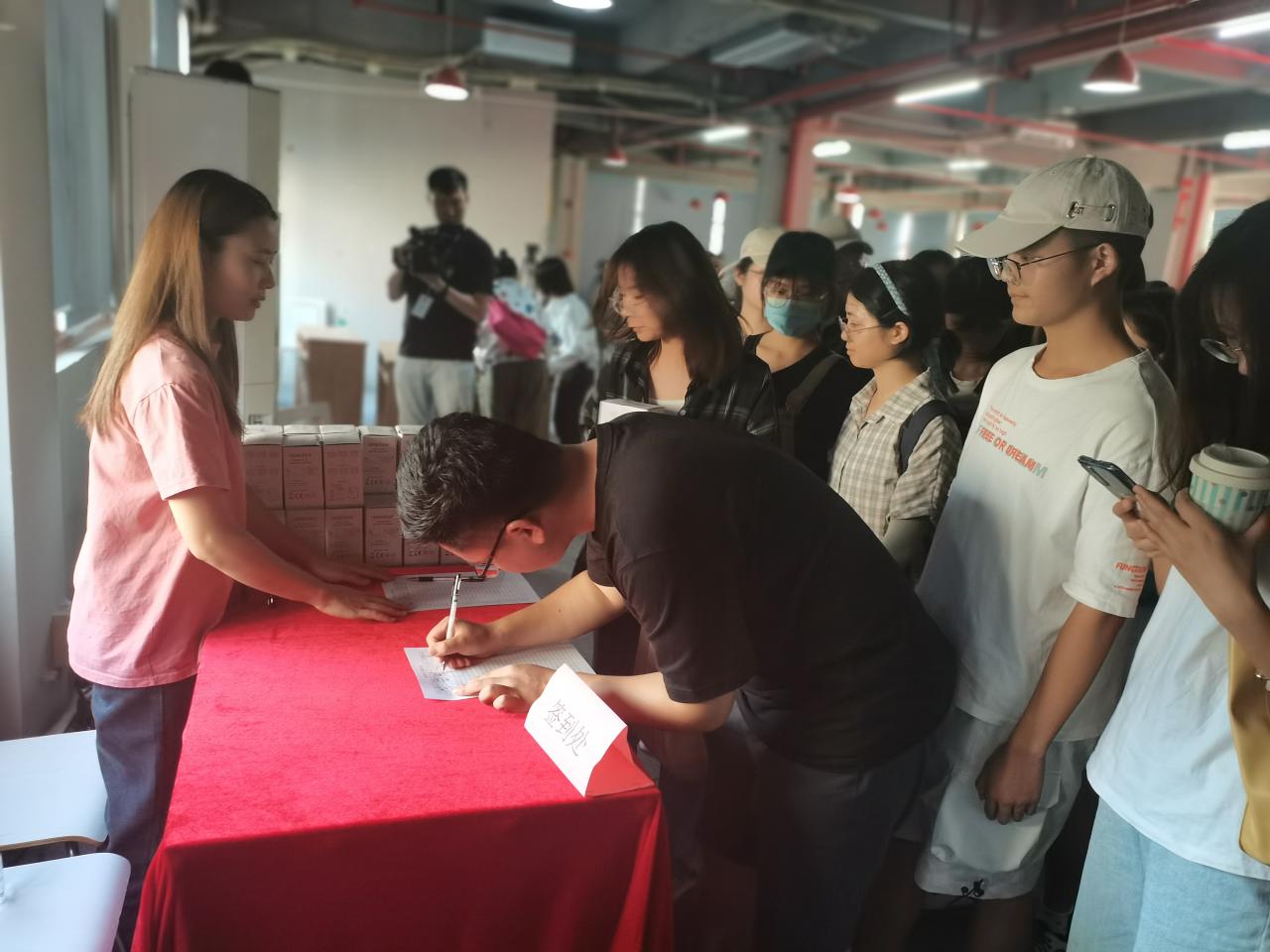 活动的最后,参与活动的师生和企业代表一起合影留念。合影过后,报社为与会人员准备了一份纪念礼品:一个小风扇和一本关于海南自贸港建设的图书,同学们对此表示感谢,并积极参与填写报社的调查表,部分有意向者还填写了招聘表。在一片其乐融融的氛围中,本次活动圆满结束。