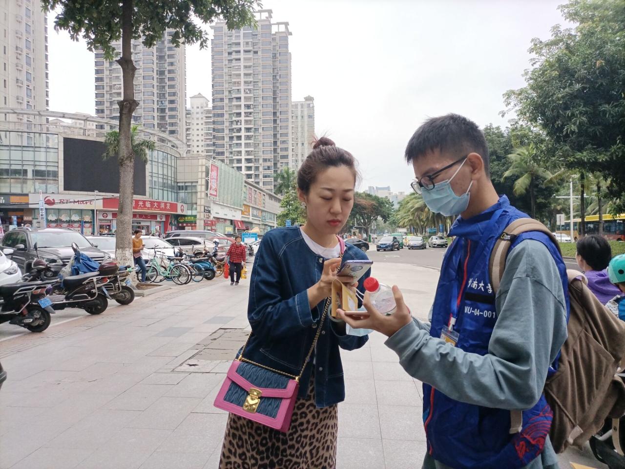在带队人员详细讲解募捐流程后,志愿者们分头行动,走上街头进行劝募。志愿者们向行人耐心解释善行100活动的捐助模式,并且阐明了该公益活动的意义所在。有些行人会质疑活动的真实性,志愿者们便打开手机,给行人查看相关官方消息以证真实,在对此次活动有了充分了解之后,大多数行人选择捐赠,非常愿意为贫寒地区的孩子献上一份爱心。志愿者们手持募捐手册以及募捐二维码,积极向行人介绍募捐活动,全程尽心尽责,活动开展十分顺利。