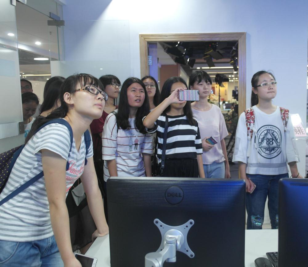 尚老师首先带领大家来到新筹建的新闻中心演播厅进行参观,期间邀请新闻中心负责人为同学们介绍了整个项目的建设情况,带领大家参观了办公场地,包括编辑大厅、演播室、录音室等。在参观的过程中,同学们积极提出自己的问题,尚老师对同学们提出的问题耐心地进行解答。接下来尚老师带领同学们参观海南网络广播电视台,在这里不仅参观了办公区、会议室,还进入直播间切身感受了录制电视节目的工作环境。网络广播电视台CEO和技术部邓主任对大家的到来表示热烈欢迎,并为同学们讲解网络广播工作的内容以及录制节目的相关流程。