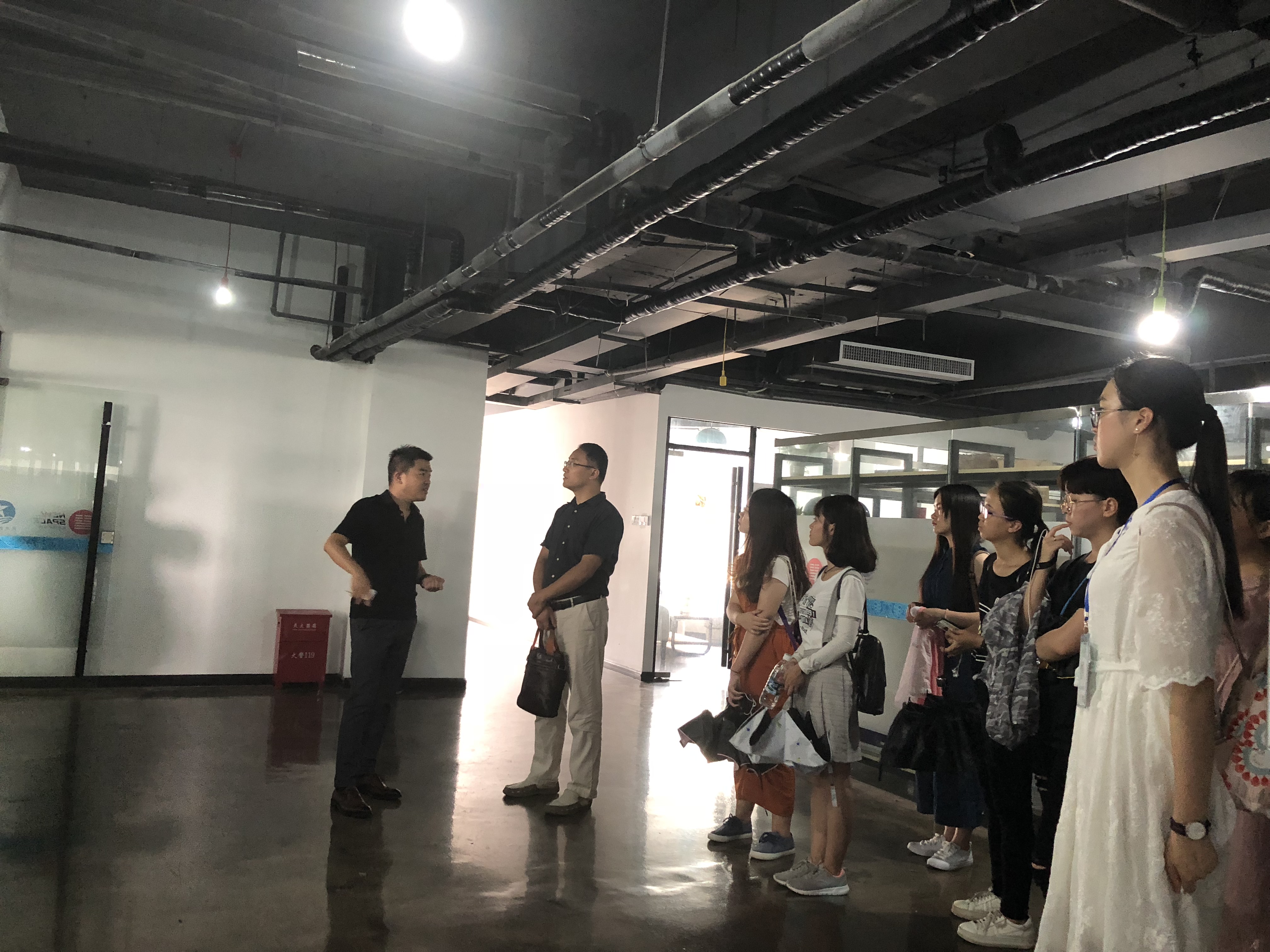 4月26日下午3点,公司2018年“走进企业”系列活动第二站来到了海南洪泰复兴城创新空间,来自2015、2016和2017级的11名同学在学工办主任公衍峰老师的带领下前往参观学习,并受到了企业负责人的热情接待。