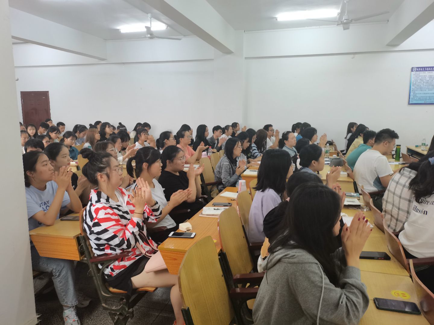 在最后的提问环节中,同学们踊跃发言,提出困惑,同各位学姐互动讨论。在同学们的热烈掌声下,交流会在温馨和谐的气氛中落下帷幕。