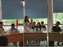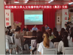 随后,同学们参加了一场座谈会,与报社高层进行了一次深入的交流。在这里,与会人员共同观看了国际旅游岛商报的宣传片,了解了报社三十年发展的具体情况。随后,报社社长张越先生进行致辞,表现出对海大青年学子极高的期望。在接下来的提问环节中,同学们踊跃提问,询问报社的薪酬福利以及报社招聘时所看重的能力等等,张越先生对此一一进行了解答。随后,张越先生就老员工如何提升自己提出了一些建议。建议老员工广泛学习,在掌握专业知识之外学习通用知识,关注海南政策,抓住海南机遇。同学们纷纷表示在这场交流中获益匪浅。