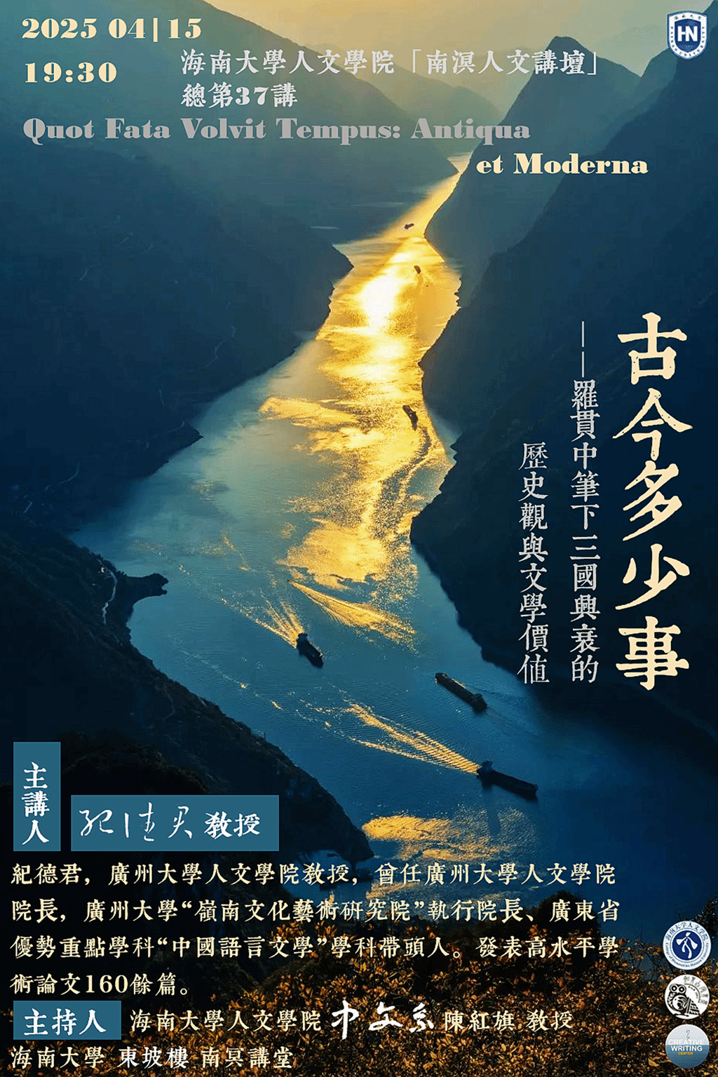 【学术预告】bevictor1946韦德官网“南溟人文讲坛”第三十七期 纪德君 古今多少事——罗贯中笔下三国兴衰的历史观与文学价值