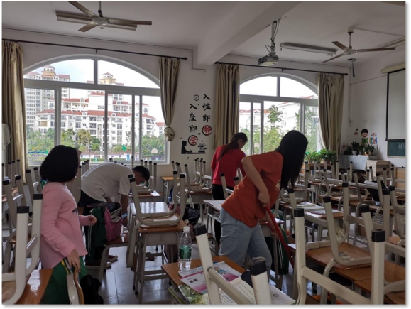 (实习同学李云逸和孙建勋在班级和小员工共同值日)