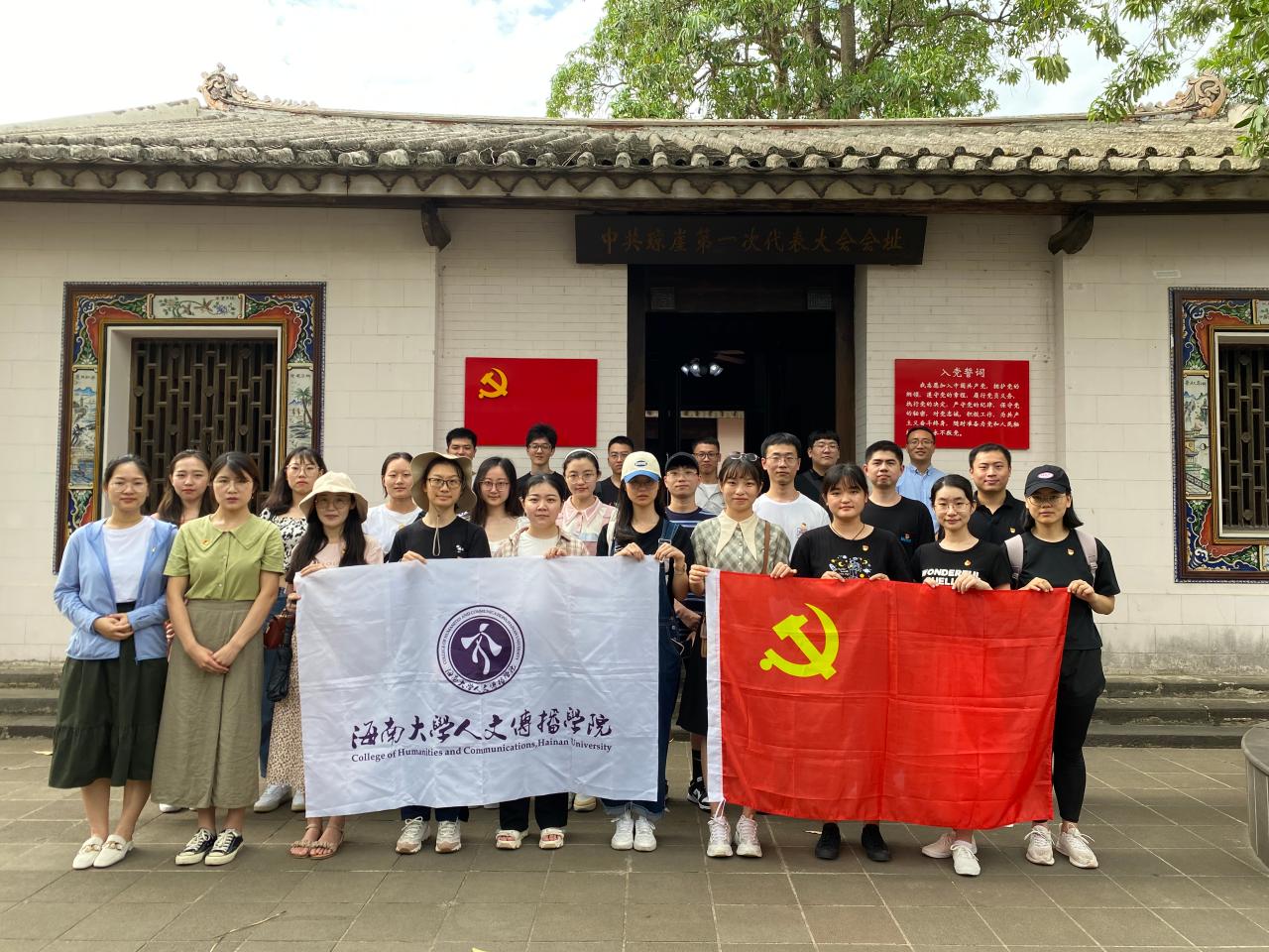 为进一步深入贯彻习近平总书记关于党史学习教育的重要讲话精神,落实公司党委关于公司党史学习教育的具体安排,围绕迎接建党一百年目标,2021年6月5日,人文传播公司研究生第一党支部、研究生第二党支部赴琼崖一大旧址开展“重温革命历史,传承红色精神”主题教育。此次活动由公衍峰同志主持,研究生第一、第二党支部全体党员同志参加。